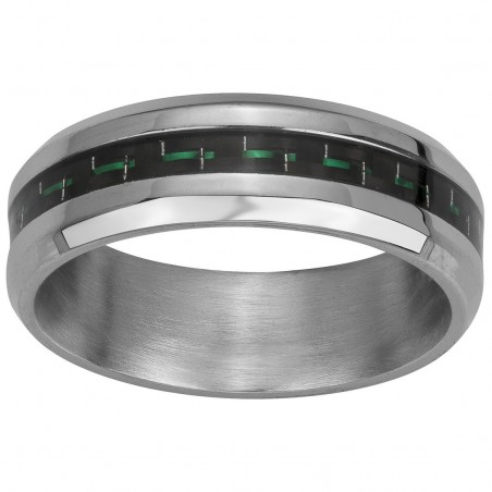 Bague Phebus Homme en Acier argenté avec carbone noir et vert