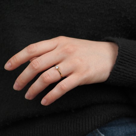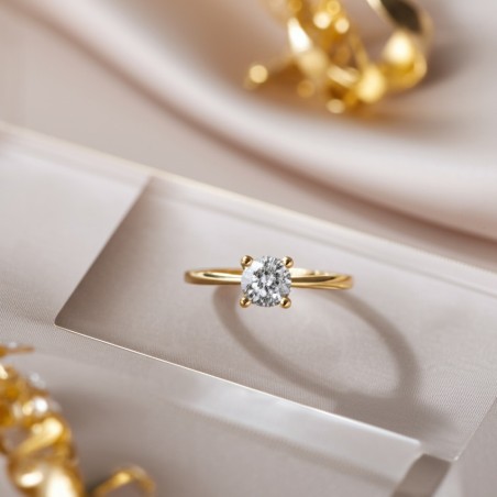 Bague solitaire Carador en or jaune 375/000 et oxydede zirconium serti 4 griffes