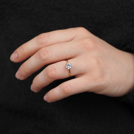 Bague solitaire Carador en or jaune 375/000 et oxyde de zirconium serti 4 griffes