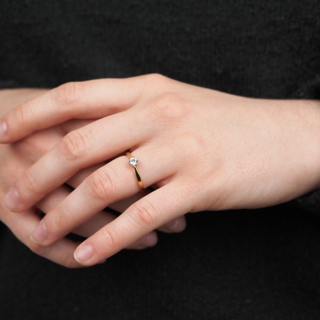 Bague solitaire Carador en or jaune 375/000 et oxyde de zirconium serti 4 griffes