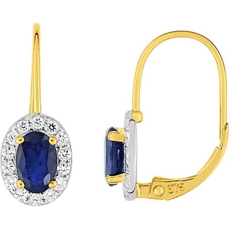 Boucles d'oreilles Carador Dormeuses saphir serti 4 griffes en or jaune 375/000 et oxydes de zirconium