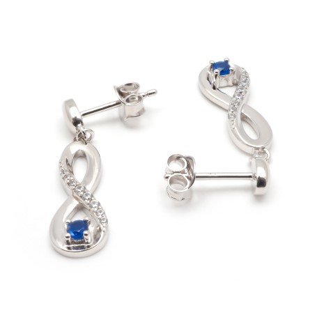 Boucles d'oreilles pendantes Carador en argent et oxydes de zirconium et spinelle bleue motif infini