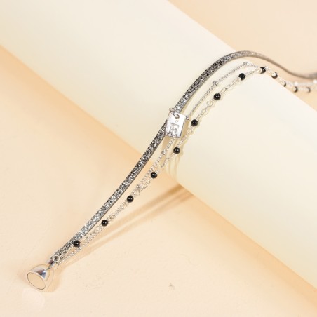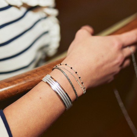 BRACELET FEMME FLOWERS FOR ZOE ORPHEE ARGENT SPARKLING EN ARGENT CUIR ARGENTE ET AGATE NOIRE 17 CM