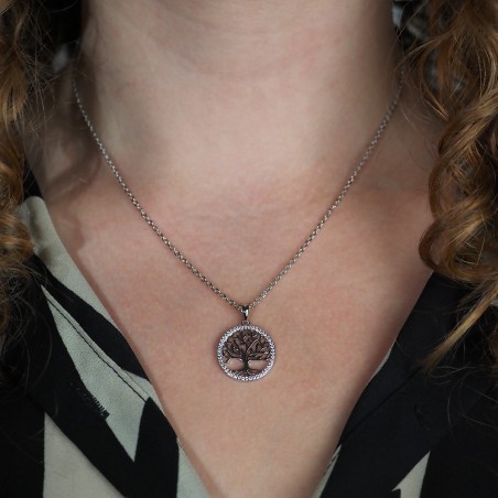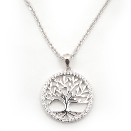 Collier fantaisie femme carador en argent avec oxydes de zirconium motif arbre de vie