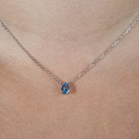 Collier solitaire femme carador en argent et oxyde bleu serti griffes