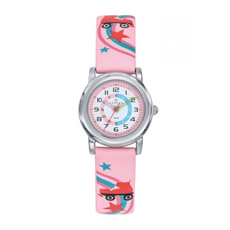 MONTRE CERTUS ENFANT EN CUIR ROSE AVEC MOTIF ROLLER CADRAN PEDAGOGIQUE