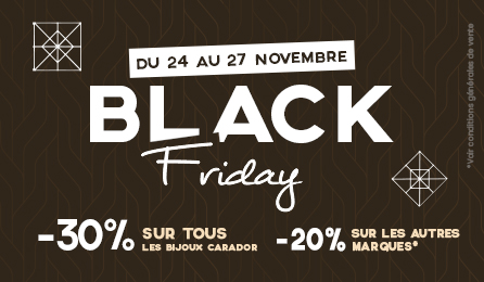 Le Black Friday 2024 est enfin là, et chez Carador, nous sommes prêts à vous éblouir ! Découvrez une collection exceptionnelle de bijoux en ligne conçus pour sublimer votre élégance et votre style. Notre collection a été soigneusement créée pour vous offrir des pièces uniques, fabriquées avec des matériaux de première qualité. Que ce soit pour offrir à un être cher ou pour vous faire plaisir, profitez d'offres incroyables et de réductions jusqu'à -30% lors de ce Black Friday Carador. Nous assurons une livraison rapide et sécurisée, et notre équipe est prête à répondre à toutes vos questions et besoins. Alors, ne manquez pas cette opportunité de gâter vos proches et de briller de mille feux.