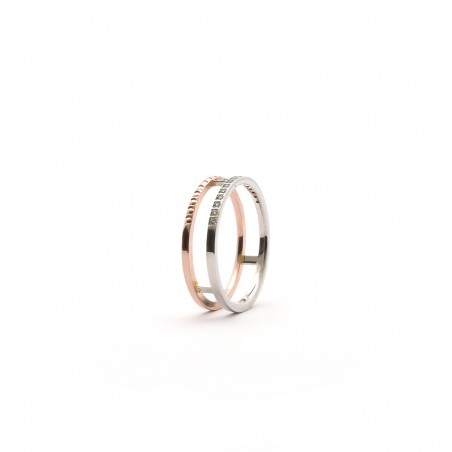 Succombez à l’alliance parfaite entre l’or rose et blanc de cette bague originale et raffinée de qualité or 9 carats et ses 18 diamants de 1.00 mm pour 0.07ct.