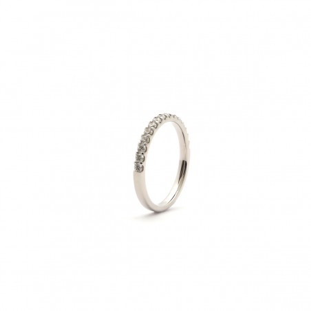Ce modèle révèle un anneau or blanc 375/000 scintillant et ses 16 diamants de 1.85mm pour 0.38ct serti griffe demi-tour.