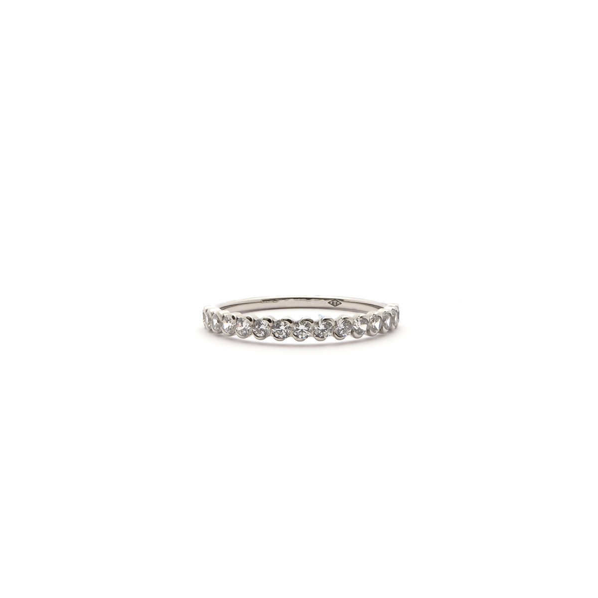 L’alliance dont vous rêviez avec son anneau or blanc 375/000 scintillant et ses 15 diamants de 1.90mm pour 0.39ct serti demi tour lune.