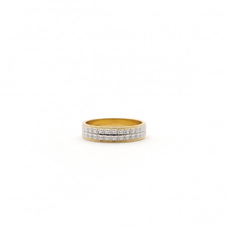 Plus que tout autre bijou, l’alliance est un objet qui vous accompagne toute une vie. Pour vous aider à faire le bon choix, Carador a sélectionné une alliance, pour homme, en or jaune et blanc 375/000. Cette bague, de ruban 4.5 mm, est un bijou élégant et intemporel.