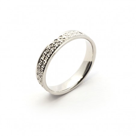 Ce modèle en or blanc 9 carats révèle un anneau d'une grande finesse .