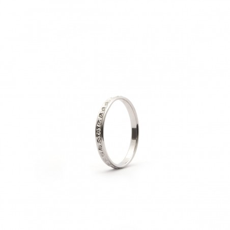 Nous prenons un soin particulier à sélectionner des alliances, qui resteront, pour toute la vie, le symbole de votre union. Carador vous propose cette alliance femme en or blanc 9 carats, anneau travaillé afin de lui donner du relief. Largeur du ruban 2.5 mm.
