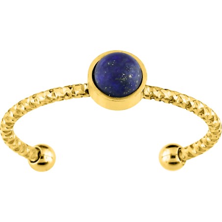 Bague Ajustable Amporelle en acier doré et Pierre bleue synthétique
