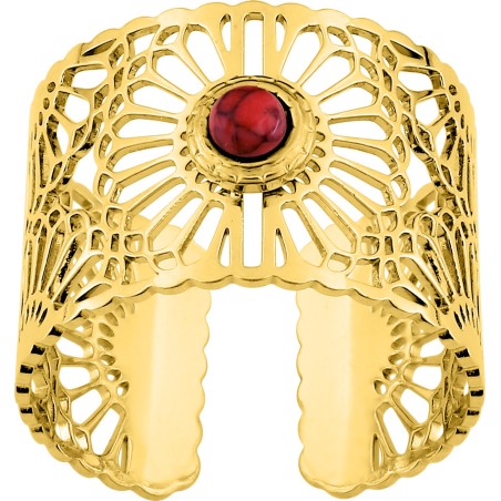 Bague Ajustable Amporelle en acier doré et Pierre rouge synthétique