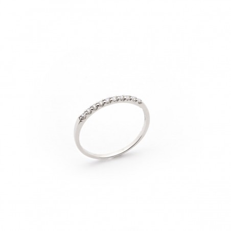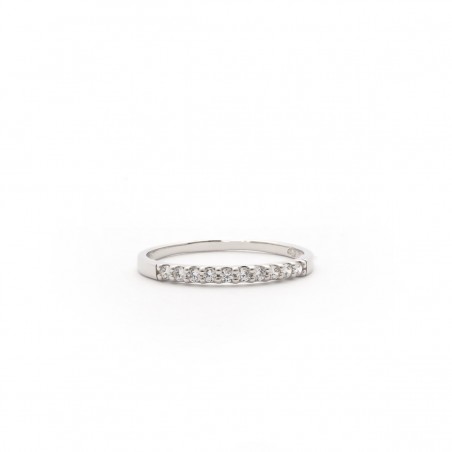La bague que vous propose Carador est une alliance demi-tour en or blanc 375/000 et oxydes de zirconium. Très sobre, le bijou, porté seul ou accompagné, fera le bonheur de celle qui le porte.