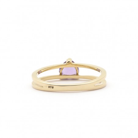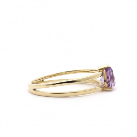 Vous allez faire sensation avec cette bague. Carador a sélectionné pour vous des bijoux de qualité avec des pierres précieuses. Cette bague se compose de deux anneaux en or jaune surmontés au centre par une améthyste en forme de cœur.
