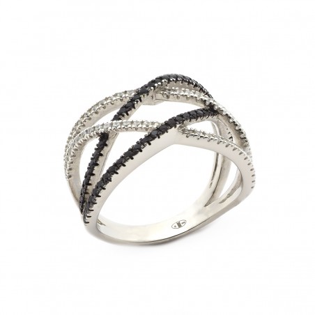 Soyez élégante de jour comme de nuit avec cette bague de la collection Carador. Tout en argent 925/000e cette bague sera un bijou de qualité. Sa silhouette entrecroisée et mise en valeur par des oxydes noirs et blancs donne à ce bijou un relief et une brillance que vous allez adorer.