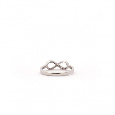 Cette bague avec le symbole infini est en argent 925/000, avec des oxydes de zirconium. Un joli bijou fantaisie pour les jeunes filles d'aujourd'hui. La mise à taille est gratuite chez Carador, renseignez-vous auprès du service client.
