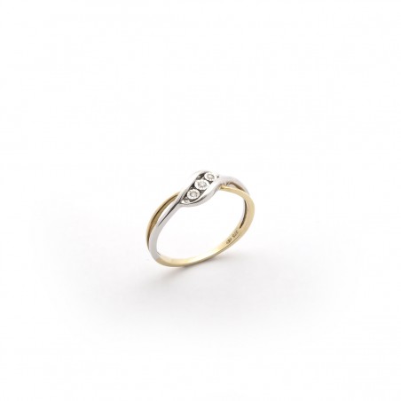 Carador vous propose cette bague fantaisie type Trilogy deux ors 375/000 et diamants 0,03 cts. Un bijou moderne et élégant. La mise à taille est gratuite, renseignez-vous auprès du service client.