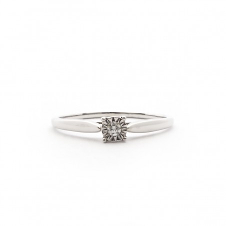 Ce magnifique solitaire se compose d'un anneau en or blanc et d’un diamant sublime.