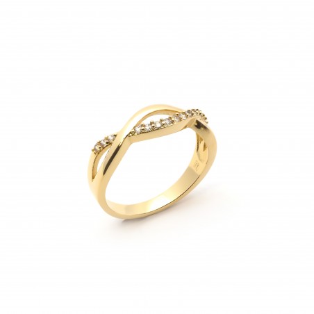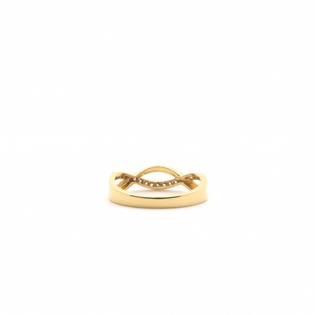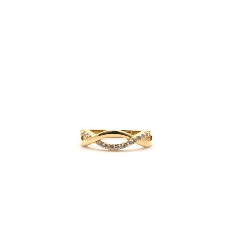 Pour habiller votre doigt d'un bijoux lumineux et scintillant, venez découvrir la sélection de bijoux plaqué or de votre bijouterie Carador. La bague présentée ici vous dévoile un motif de tresse partiellement orné d'oxydes de zirconium.