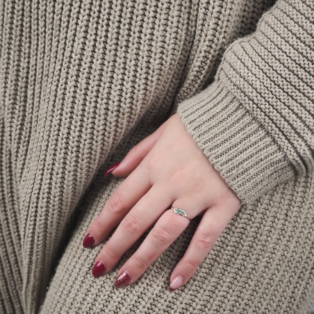 Ce modèle affiche un anneau effet double sur l'avant surmontée d'une sublime émeraude 0.085 carats qui plaira aux femmes et aux jeunes filles.