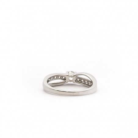 Cet anneau affiche deux brins d'agent de formes courbes dont l'un est orné d'oxyde de zirconium.