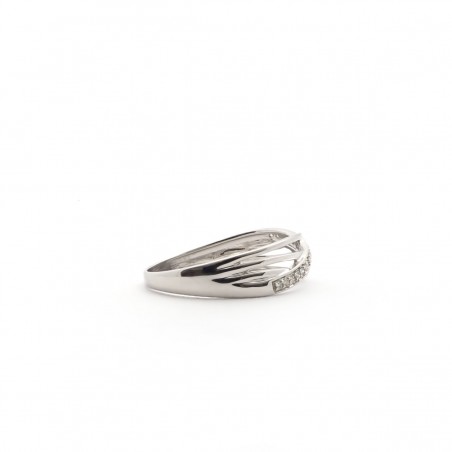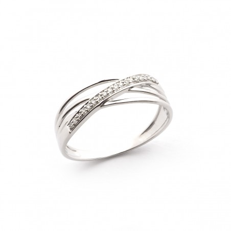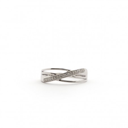 Ce modèle en or blanc se compose de plusieurs anneaux enlacés dont un serti de diamants.