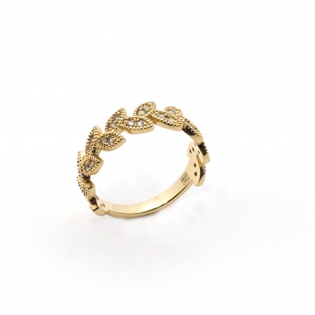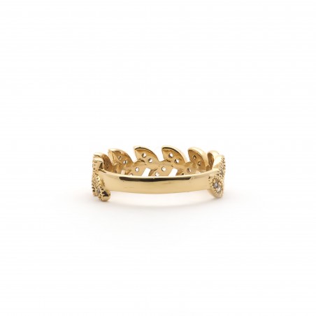 La bague laurier rélève un motif de feuilles de laurier ornées d'oxydes de zirconium.