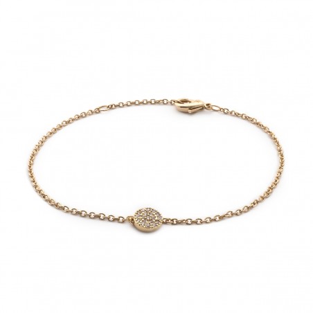 Le bracelet proposé ici se compose d'une chaine maille forçat et d'un motif rond serti d'oxydes de zirconium.