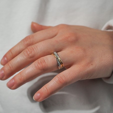 Sélectionnée parmi la collection de bijoux or 750/000 et diamant de votre bijouterie Carador, cette ravissante bague associe l'or jaune et l'or blanc pour mettre en les diamants sertis rails. Un bijou sophistiqué et discret à la fois dont vous ne pourrez plus vous passer.