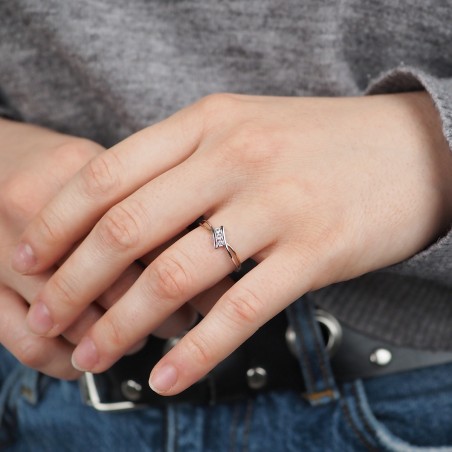 Ce modèle se compose d'un anneau fin bicolore et d'une trilogie d'oxyde de zirconium.