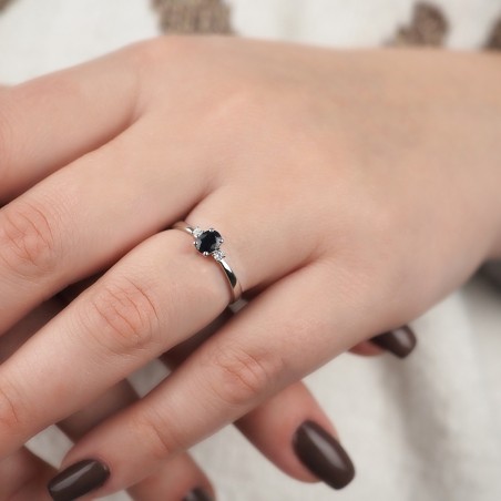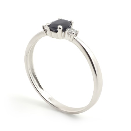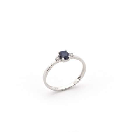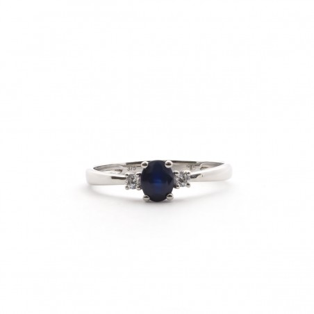 Bague Carador or blanc 375/000, saphir 0,50 cts et oxydes de zirconium