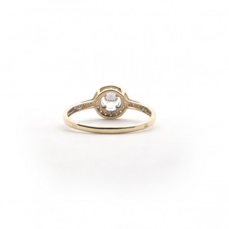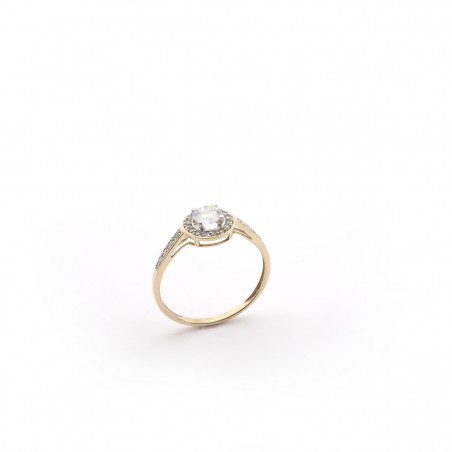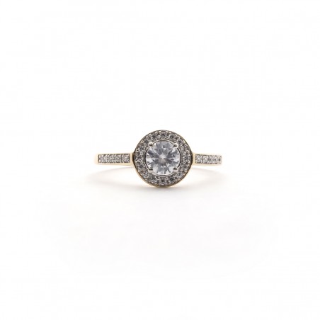 Ce modèle se compose d'un anneau orné d'un solitaire d'oxyde de zirconium accompagné.