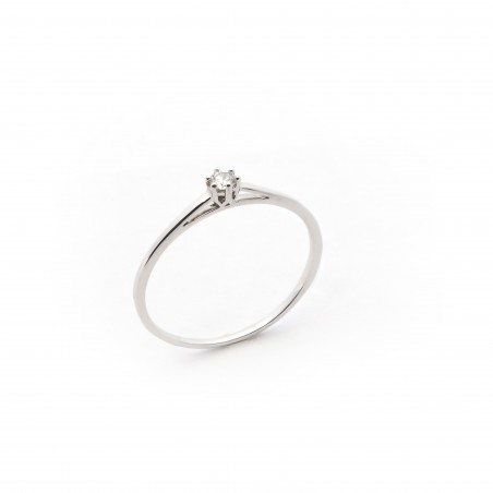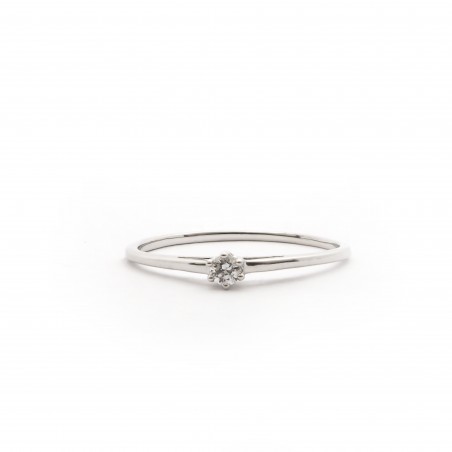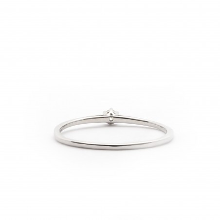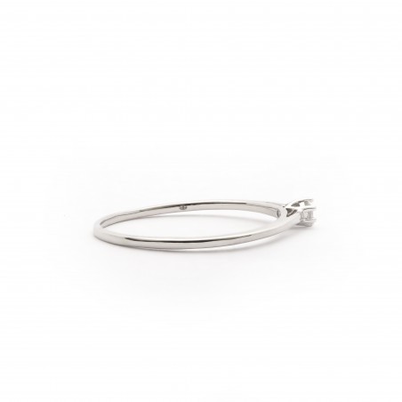 Cette bague est en or blanc 750/000. Le diamant, de 0.05 cts est de forme ronde.