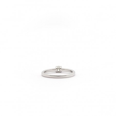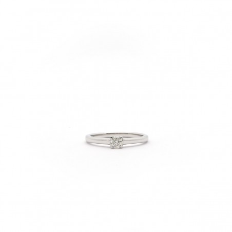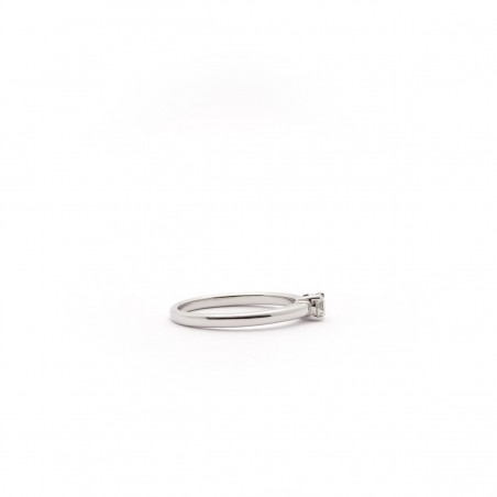 Cette bague est en or blanc 750/000. Le diamant, de 0.250 cts est de forme ronde.