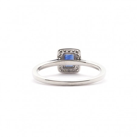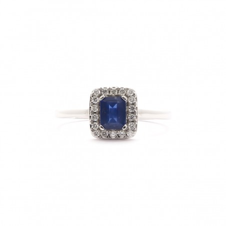 Avec la bague style Baroque, Carador vous propose un bijou intemporel et précieux. Cette bague est en or blanc 750/000, saphir et diamants. La tête de bague rectangulaire révèle un saphir rectangle de 0,59 cts entouré de diamants.