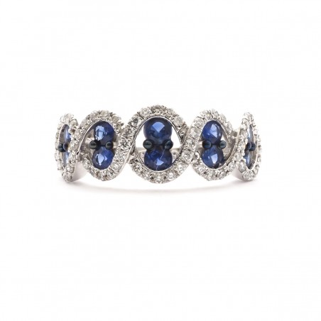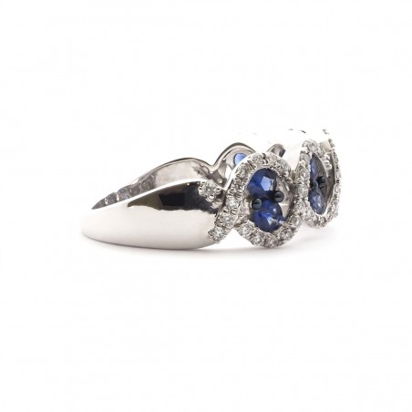 Parmi la sélection de bijoux or 750/000 proposée par votre bijouterie Carador en ligne, craquez pour cette sublime bague en or blanc, saphir et diamant. Avec son esprit rétro, la bague mettra en valeur votre main en toutes occasion. Dévoilant dix saphirs cerclés de diamants, cette bague ne manque pas d'éclat.