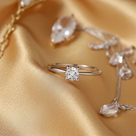Ne résistez plus à l'envie d'un bijou précieux et délicat avec cette bague sélectionnée par Carador. La bague est en or blanc 375/000 et est ornée de trois oxydes de zirconium ce qui lui donne un magnifique éclat. La mise à taille est gratuite, renseignez-vous auprès du service client.