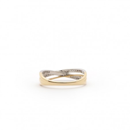 Ce modèle dévoile trois liens croisés dont deux d'entre eux sont ornés de diamants sertis rail.