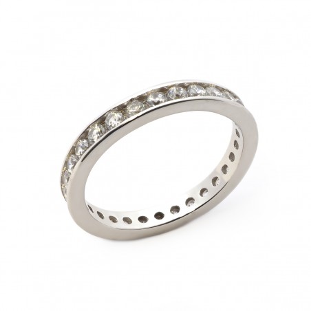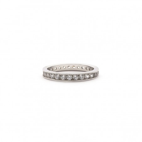 Votre bijoutier Carador vous dévoile sur son site en ligne et également en magasin sa gamme de bijoux argent 925/000. Cette bague saura vous séduire par son design intemporel et lumineux. Ce modèle de type alliance est ornée d'oxydes de zirconium sertis rail. Succombez à ce bijou fin et féminin qui illuminera votre main au quotidien.