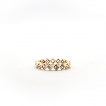 Parmi le large choix de bijoux fantaisies en plaqué or, votre bijouterie Carador en ligne a sélectionné pour vous cette ravissante bague type alliance. Formée d'oxydes de zirconium serti clos de forme carré, cette bague joue la carte de l'originalité!