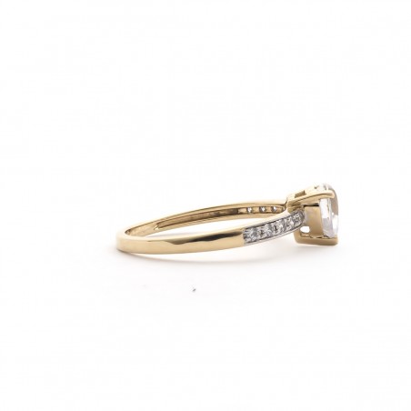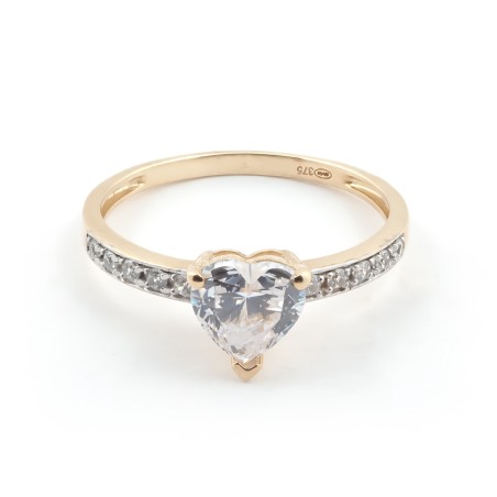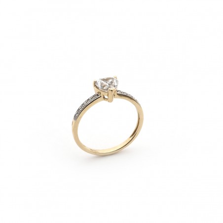 Elle se compose d'un anneau simple en or 375/000 sertis d'oxyde de zirconium incolore ainsi que rehaussé d'un motif cœur.
