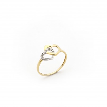 Bague coeurs enlacés Carador en or jaune 750/000 et diamants 0,02 cts