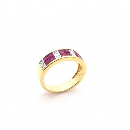 De forme intemporelle, cet anneau vous dévoile une alternance de rubis carrés et de diamants ce qui lui confère une touche de modernité.