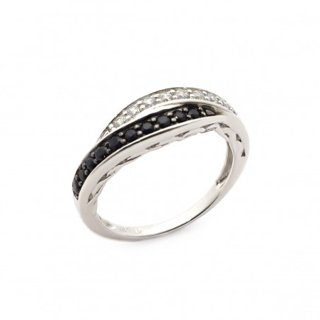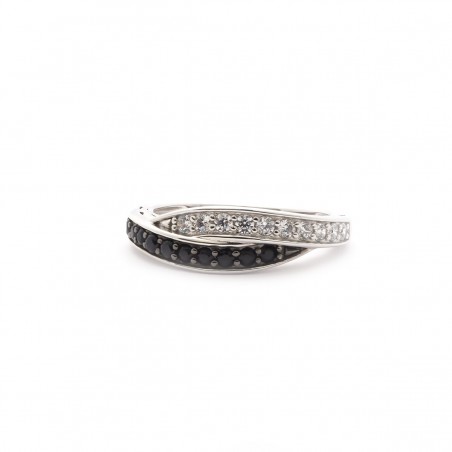 Ce modèle se compose d’un anneau effet double, l'un d'oxydes de zirconium blanc, l'autre noir.