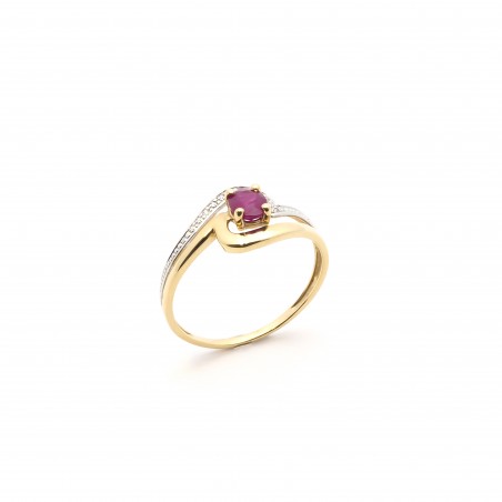 Votre bijouterie CARADOR en ligne vous propose cette bague bicolore en or 750/000 jaune et blanc. La tête de bague est composée d'un rubis de 0.47 carats serti 4 griffes et un anneau se compose de diamants sertis grain