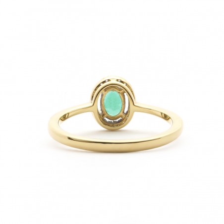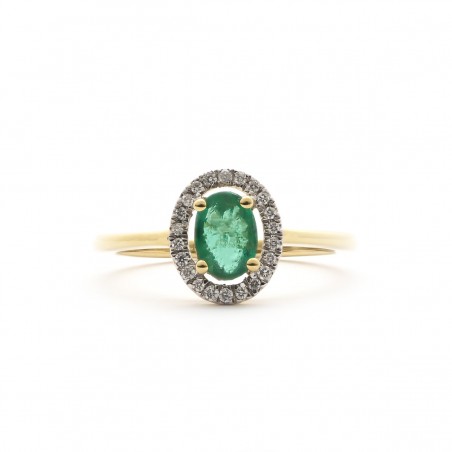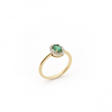 Ce bijou Carador de forme oval en or 750/000 et orné d'une émeraude de dimension de 0.6 x 0.4 mm sertie 4 griffes et mise en valeur par une multitude de diamants.
