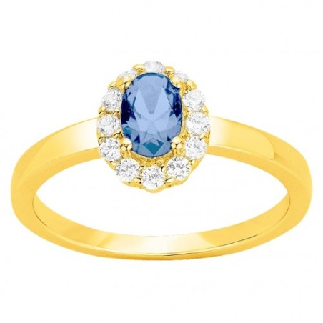 Bague fantaisie femme carador en plaqué or avec oxydes de zirconium et spinelle bleue clair